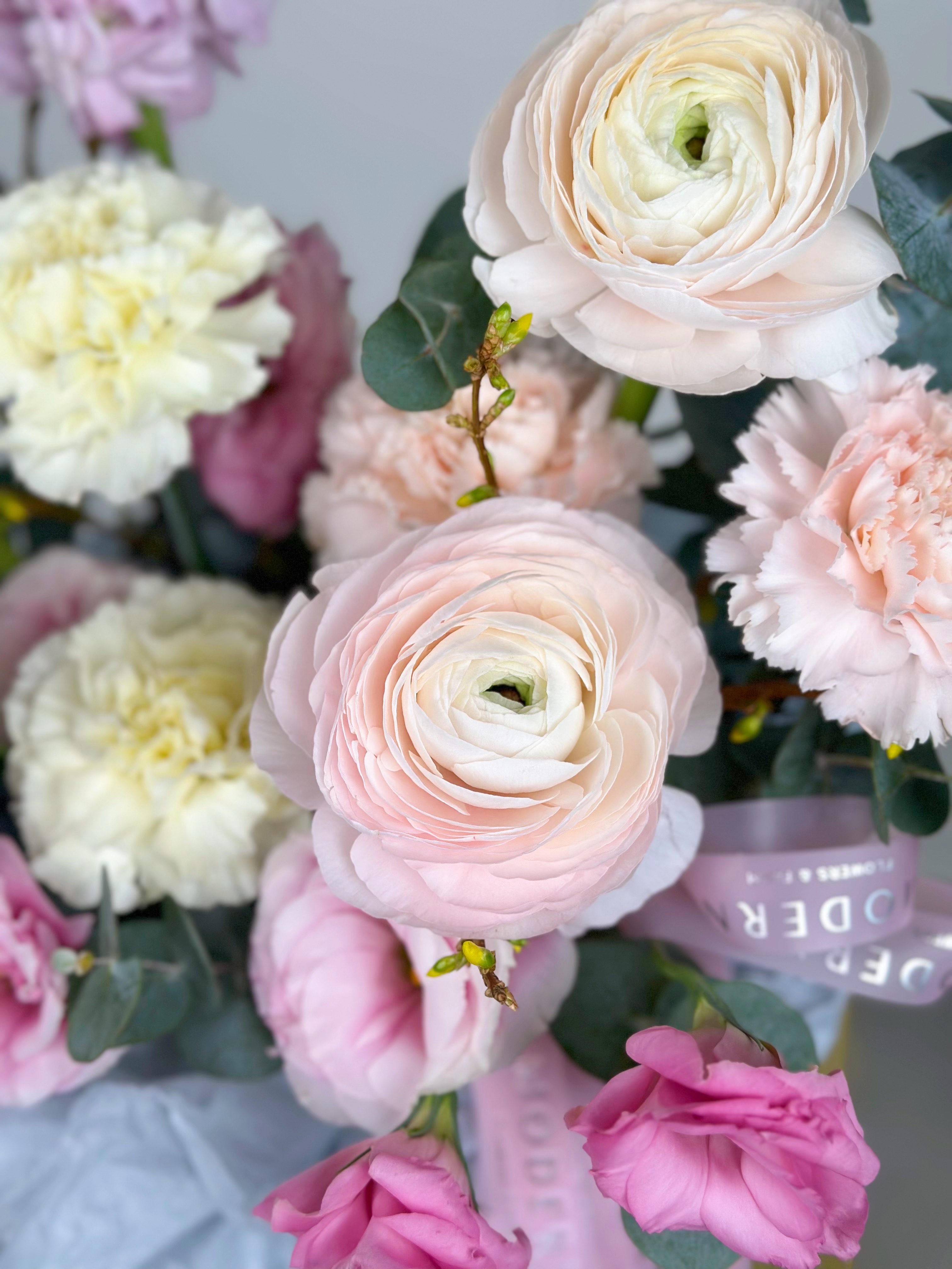 КОМПОЗИЦИЯ С РАНУНКУЛЮСАМИ, МАТТИОЛОЙ И ВЕТОЧКОЙ ФОРЗИЦИИ