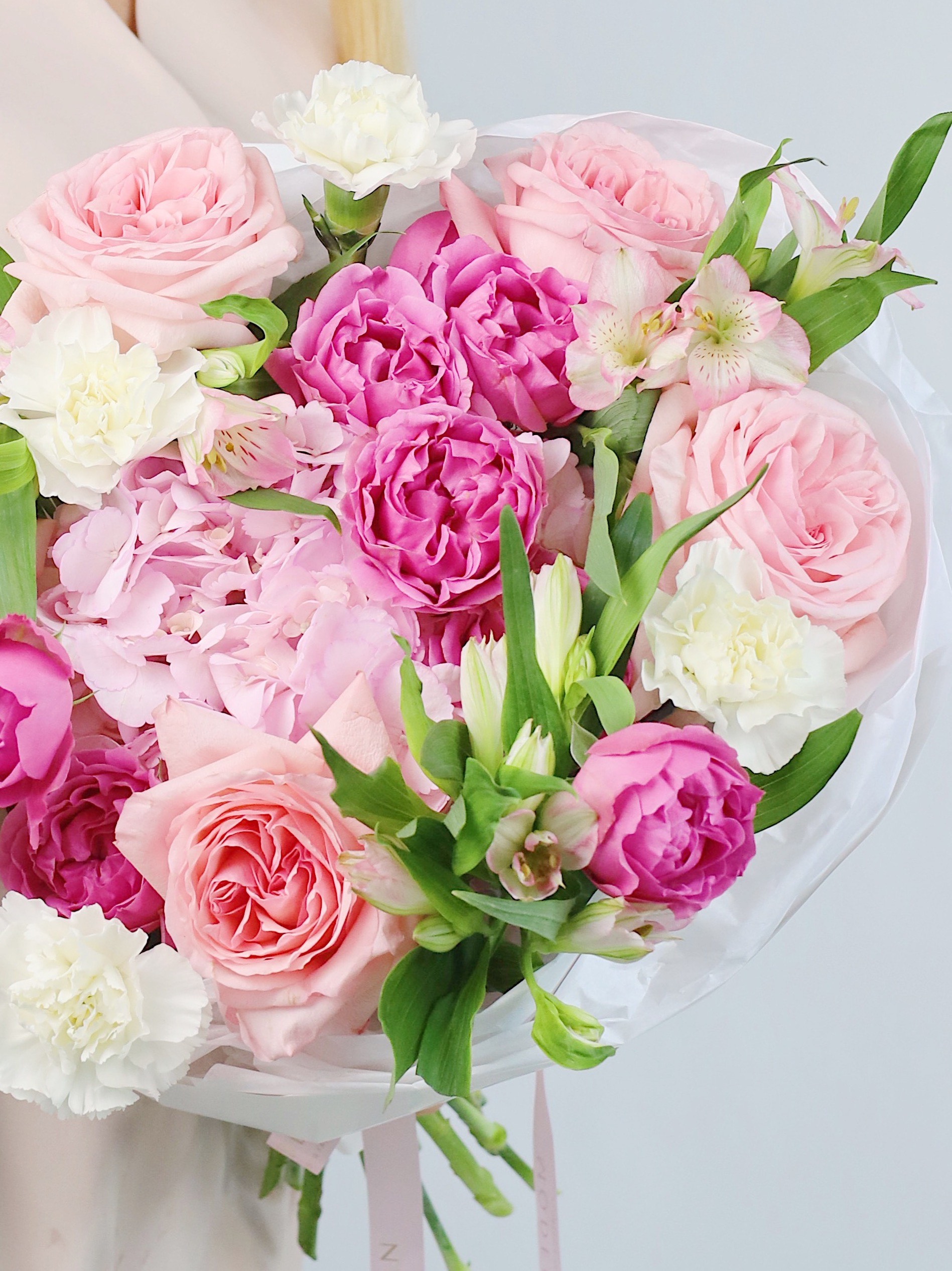 КРУГЛЫЙ БУКЕТ С ПИОНОВИДНЫМИ РОЗАМИ