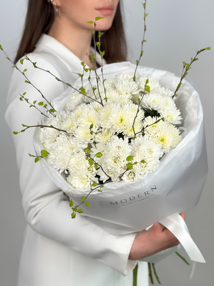 Виды букетов с белыми хризантемами в Modern Flowers & Farm