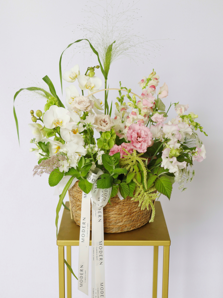 Из орхидей розового оттенка получаются элегантные романтичные подарки. Добавьте к композиции гортензию, розу или эустому — искренние эмоции получателя обеспечены.